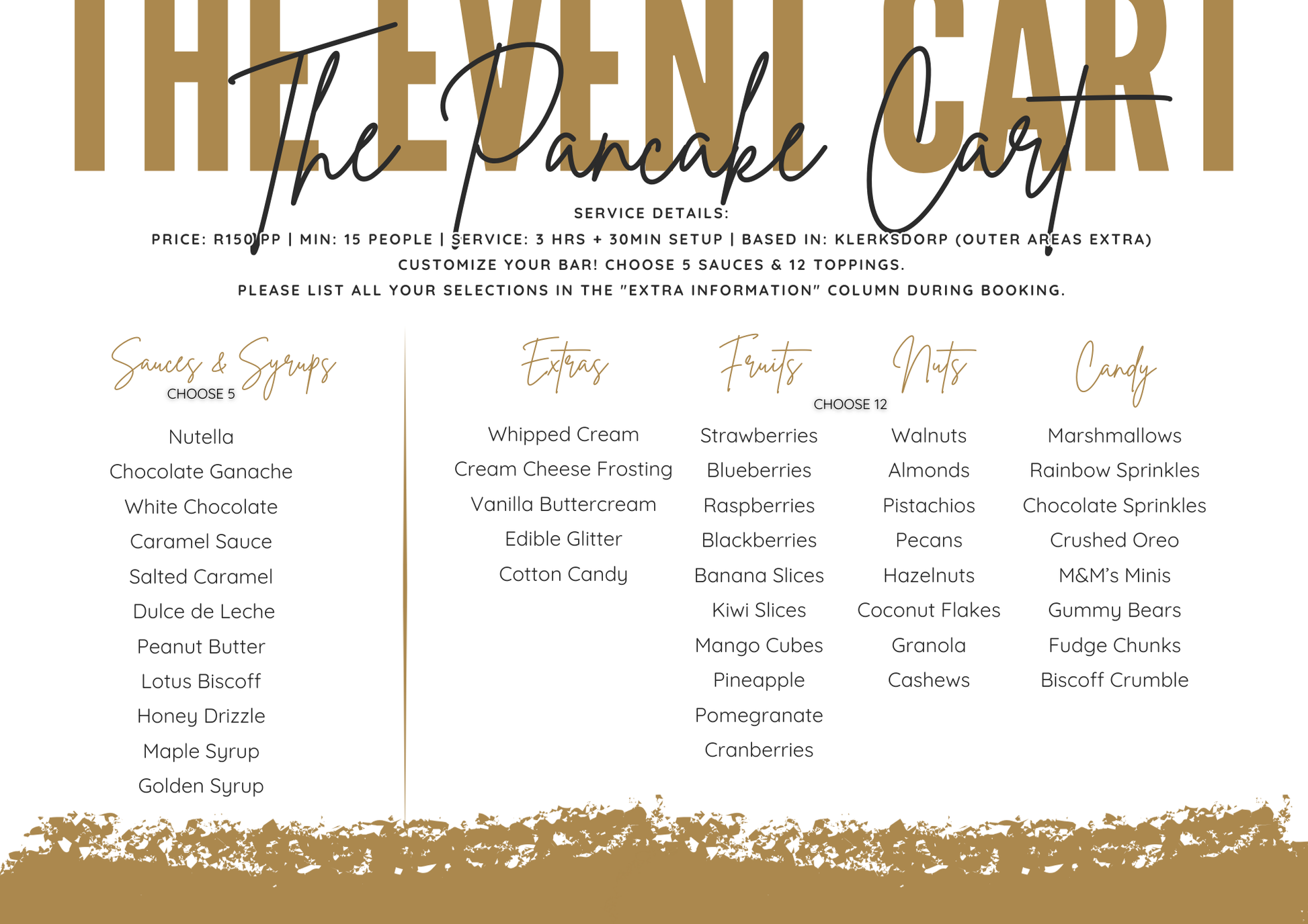 Make your event sweeter, warmer, and more memorable with our Pancake Cart — because nothing brings people together like pancakes topped to perfection.